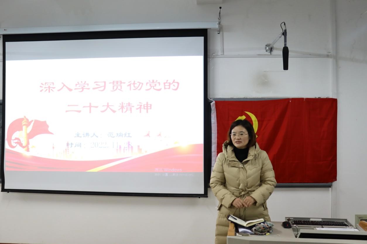 本科生党支部深入学习贯彻党的二十大精神专题党课于体育教学部228教室召开。学院党委副书记范瑞红担任主讲人,本科生党支部全体教师党员和学生党员参加会议。