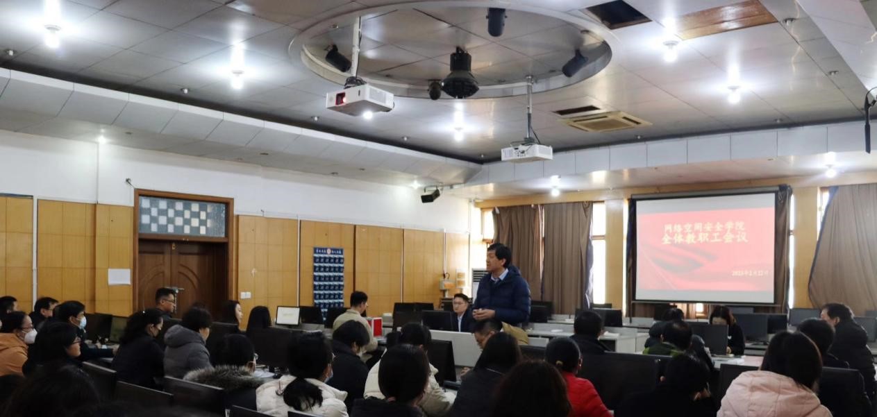 马旭传达了学校会议精神,就学校工作要点进行了重点强调。一是要调整优化专业布局,推进一流专业建设。二是要完善课程体系,构建教学团队,建立核心课程制度。三是要全面提升科研整体水平和服务经济社会发展能力。