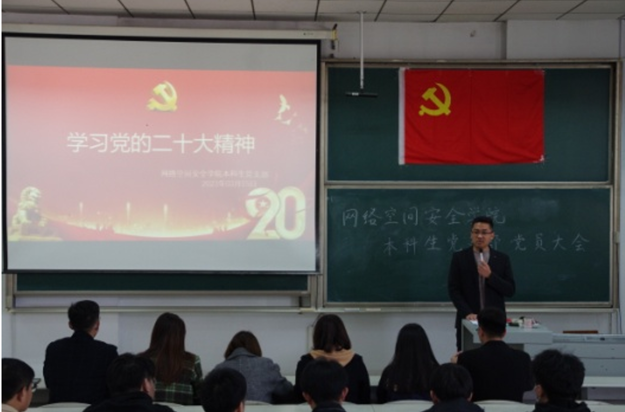 禁忌书屋 院讯(通讯员:武玉龙 刘应霖 摄影:崔城豪)3月15日,禁忌书屋 本科生党支部集中学习了党的二十大精神和党章,学院党委副书记范瑞红出席了会议,本科生党支部书记武玉龙担任主讲人,本科生党支部全体师生党员参加了会议。