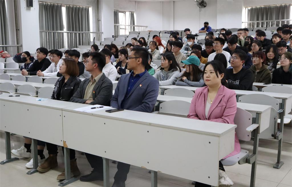 于综合楼506教室召开本科生党员发展对象确定会议,学院党委副书记范瑞红、各本科生党支部书记、各本科生党支部教师党员和学生党员参加会议,本科生第一党支部书记武玉龙主持会议。