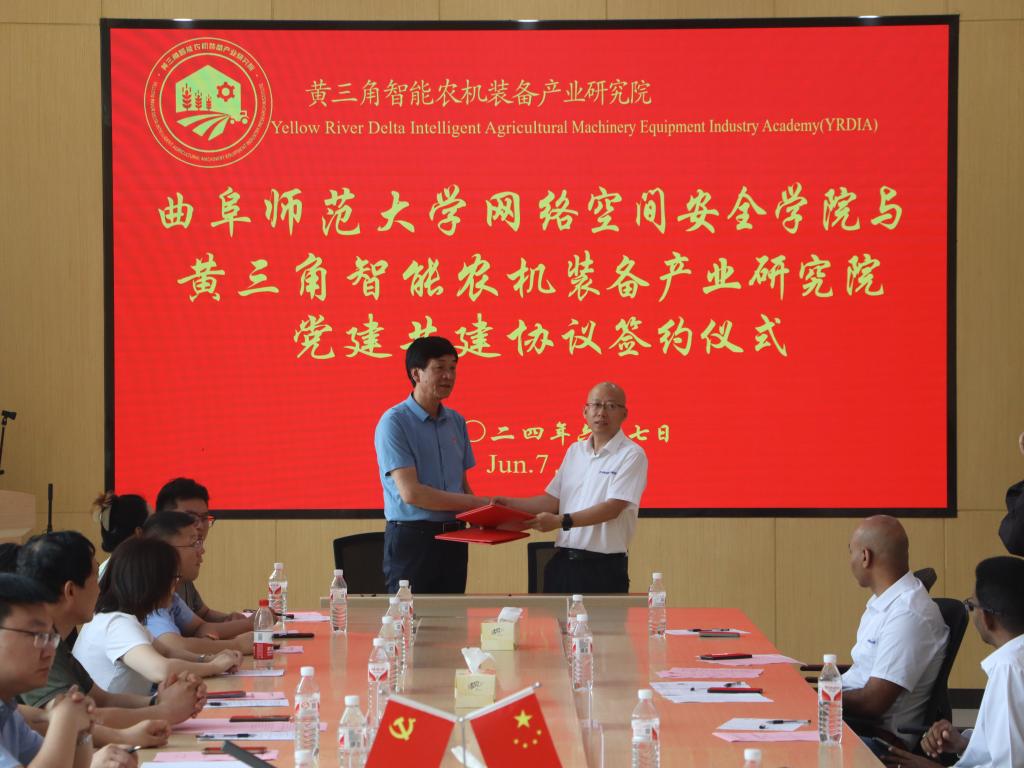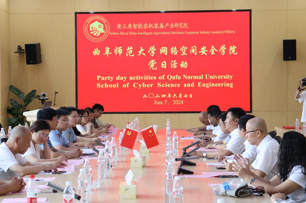 党委书记田云飞、院长王茂励、副书记范瑞红、副院长马旭、教师党支部书记秦文华等师生党员赴山东省黄河三角洲农业高新技术产业示范区开展主题党日活动并进行考察学习。山东省黄河三角洲农业高新技术产业示范区党工委副书记朱英坤、黄三角智能农机装备产业研究院院长王东伟,常务副院长田羽,党支部书记岳丹松以及研究院国内外专家共同参加活动。