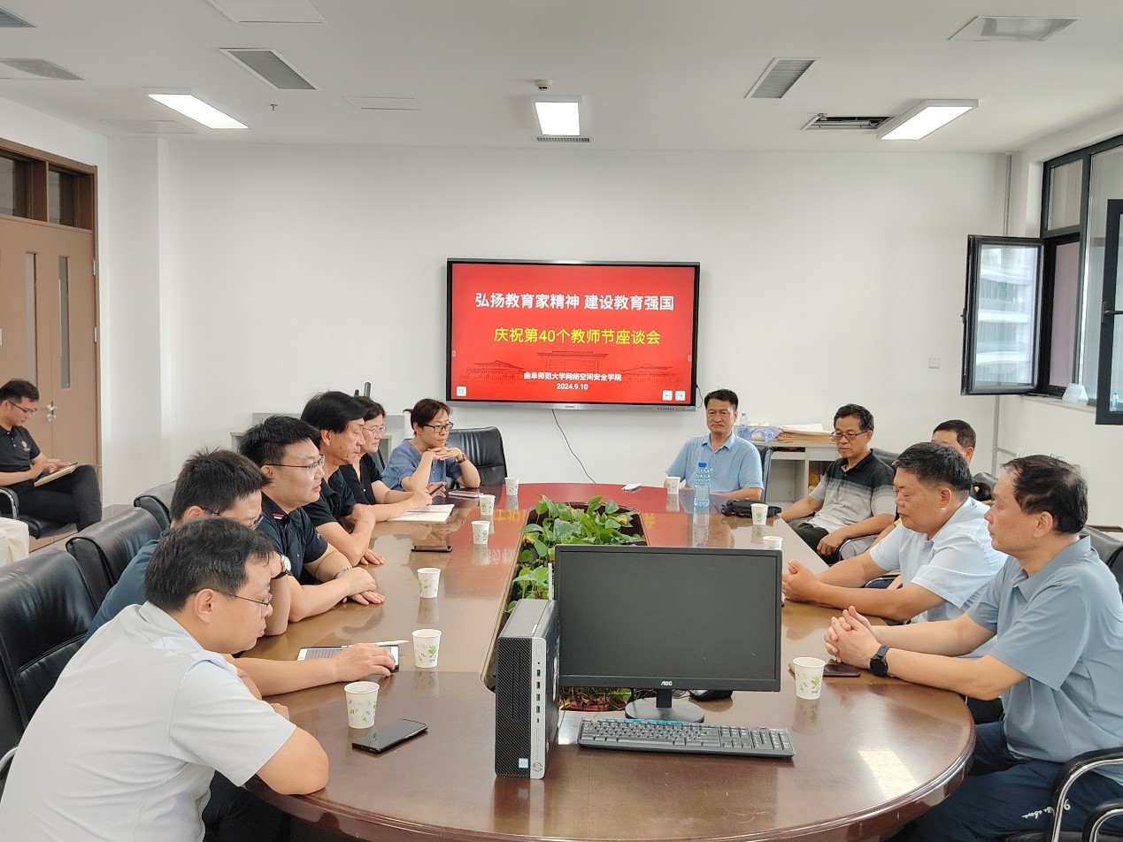 教师节座谈会于格物楼A504会议室顺利召开。此次座谈会特邀请退休老教师高仲合和赵建平出席、学院党委书记田云飞、院长王茂励、党委副书记范瑞红、副院长马旭、工会主席董占华、学院新进教师代表和全体辅导员参加会议。