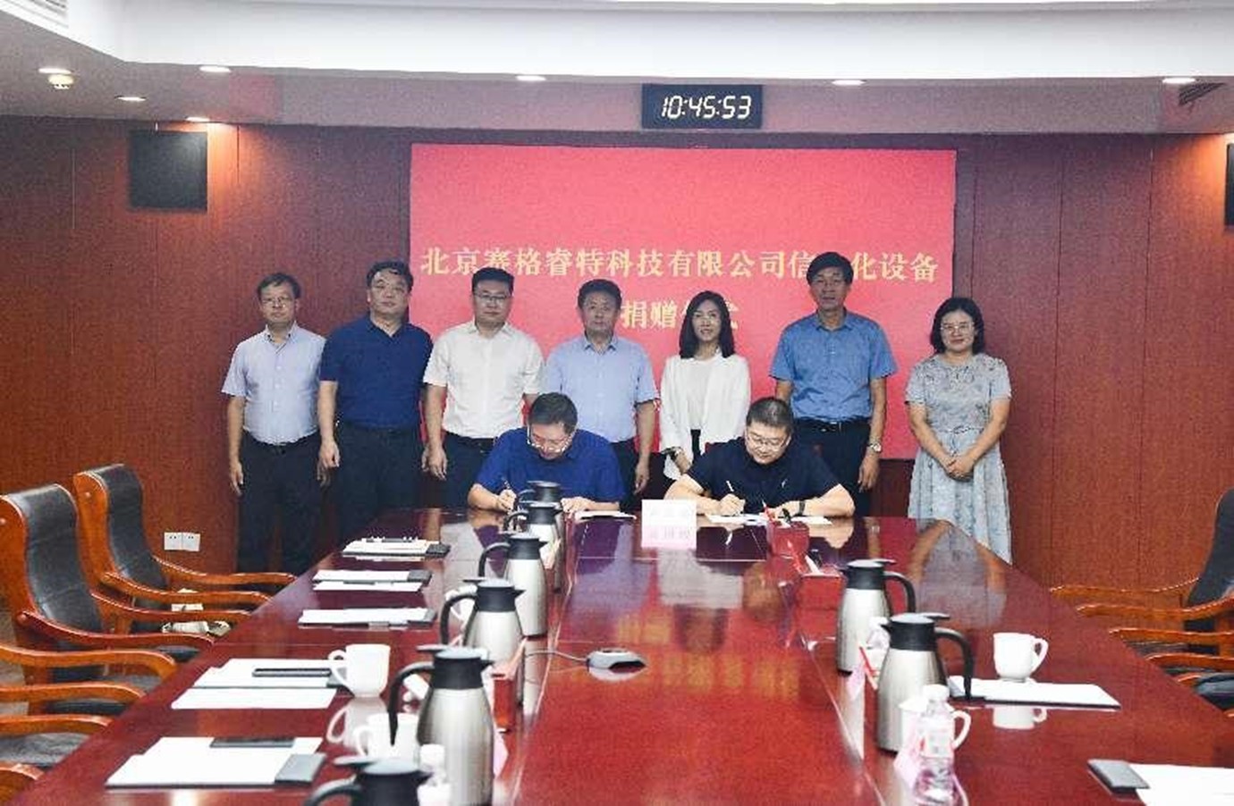 孔子教育基金会捐赠价值333万余元信息化设备,用于支持学校教育事业发展。曲阜师大数学系96级校友、北京赛格睿特科技有限公司总经理李国亮,曲阜师大党委常委、副校长、孔子教育基金会理事长纪洪涛出席仪式。