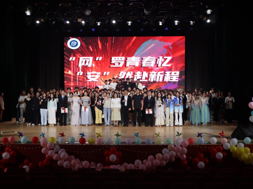 “网”罗青春忆,“安”然赴新程毕业晚会于大学生活动中心礼堂隆重举办。学院党委副书记范瑞红、团委书记丁允念、辅导员于媚媛、相青、赵兴卯及部分专业老师出席晚会。
