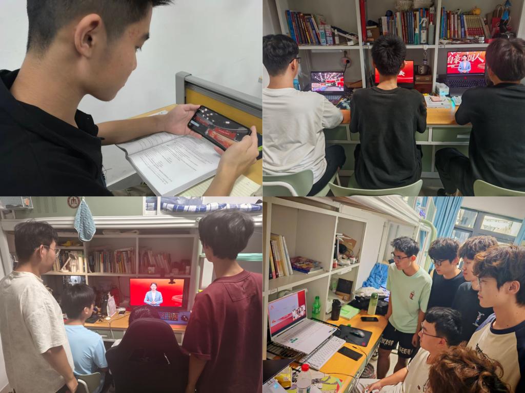 于格物楼B215、B218、B221、B316组织25级全体学生线下观看”大国担当“思政课,24级全体学生自行观看。学院辅导员于媚媛参加活动。
