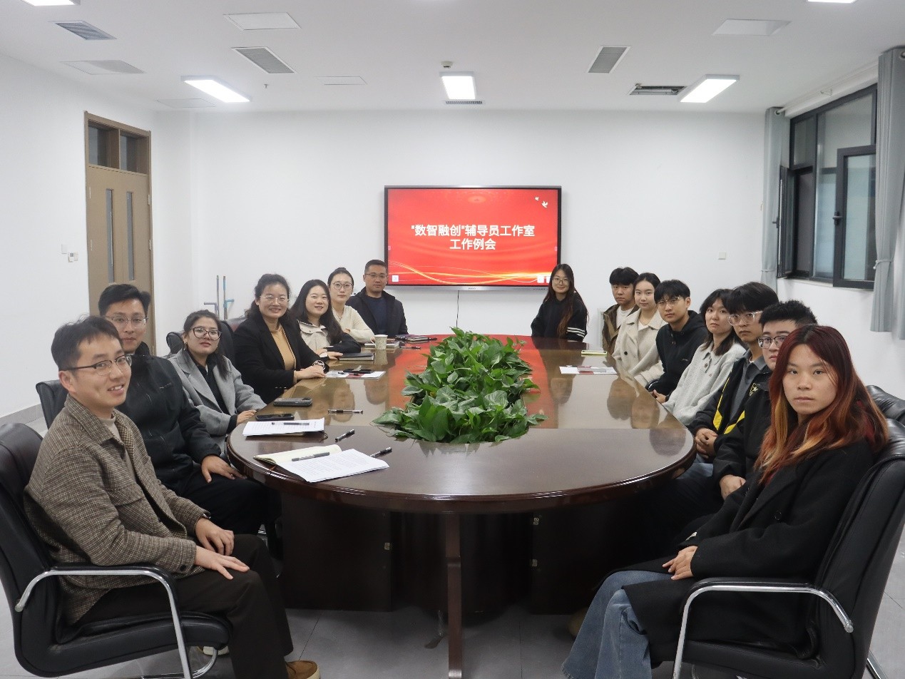 于格物楼A504会议室召开“数智融创”辅导员工作室工作例会。学院党委副书记范瑞红及工作室全体成员参加会议,团委学生会主席赵鹏州主持会议。