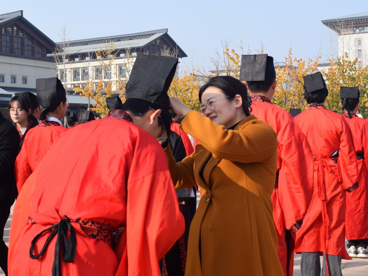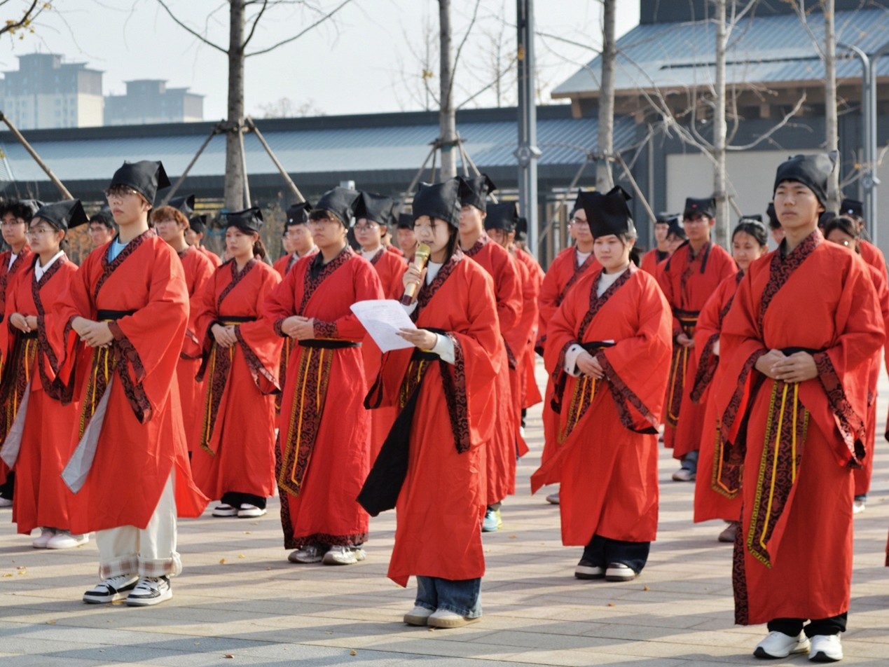 禁忌书屋 院讯(通讯员:于媚媛 杨慧婷 摄影:孙梦璐)为彰显新时代青年风采,增强文化认同与归属感,111414:00,禁忌书屋 2025级成人礼活动于西校区杏坛广场南侧隆重举行。学院党委副书记范瑞红,团委书记丁允念,全体辅导员出席活动,202581名学生代表参加仪式。