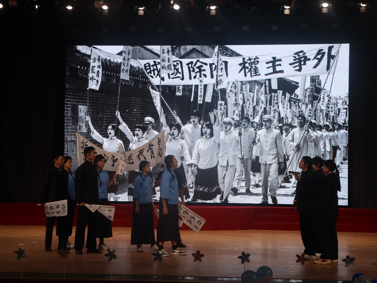 整场晚会以“启新·燃梦·盛放·追光”四个乐章串联起青春画卷。 在“启新”篇章中,歌曲串烧以动人旋律唱响青春序曲,小品《万松书院》在古今对话中展现文化传承,舞蹈《Dynamic》用跃动节拍诠释青春活力;“燃梦”篇章里,小品《史上第一大劫案》以巧妙构思引爆全场笑声,古典舞《荷不染》以曼妙舞姿演绎东方美学,歌曲《我是如此相信》用真挚歌声传递坚定信念;“盛放”乐章中,模特秀《sweet chilling》展现青春风采,舞蹈《Confetti》以缤纷色彩点燃舞台;“追光”终章里,情景剧《我们的五四》重现青春担当,光影剧《大学日记》以光与影的巧妙转换,勾勒出大学时光的温暖轨迹,最后班助师哥师姐的活力舞蹈《开心往前飞》将现场气氛推向高潮。