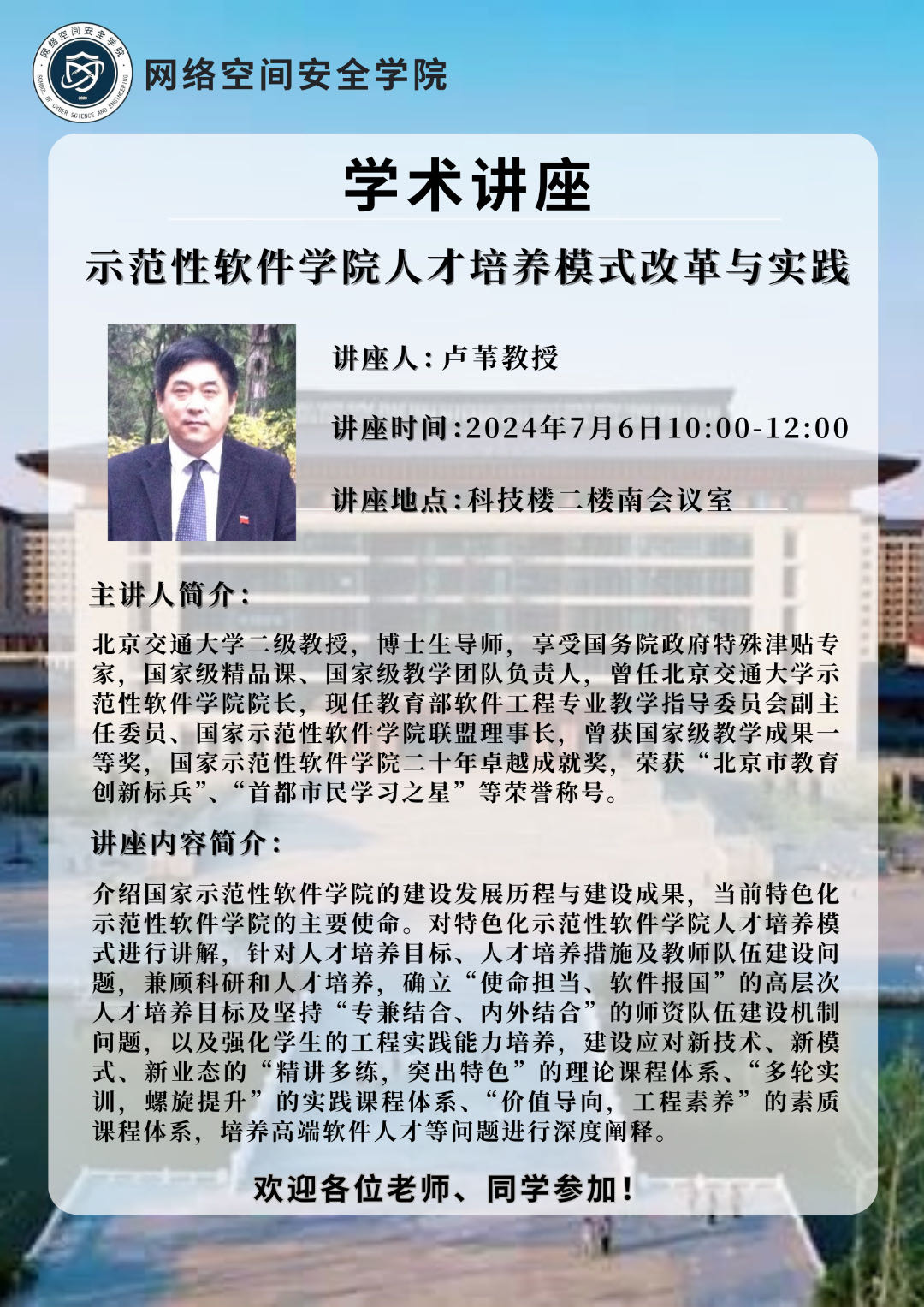 讲座通知:示范性软件学院人才培养模式改革与实践