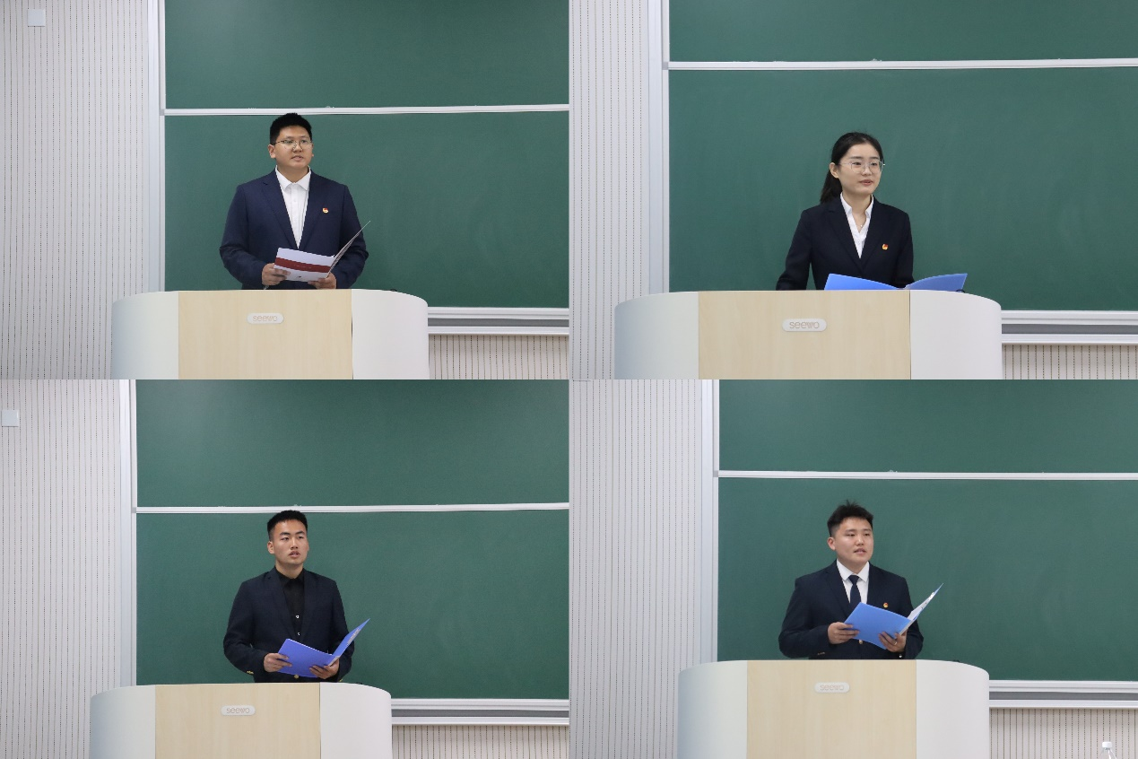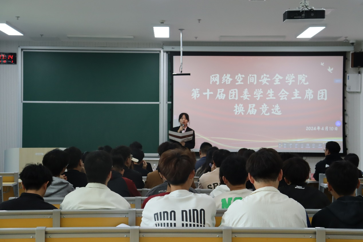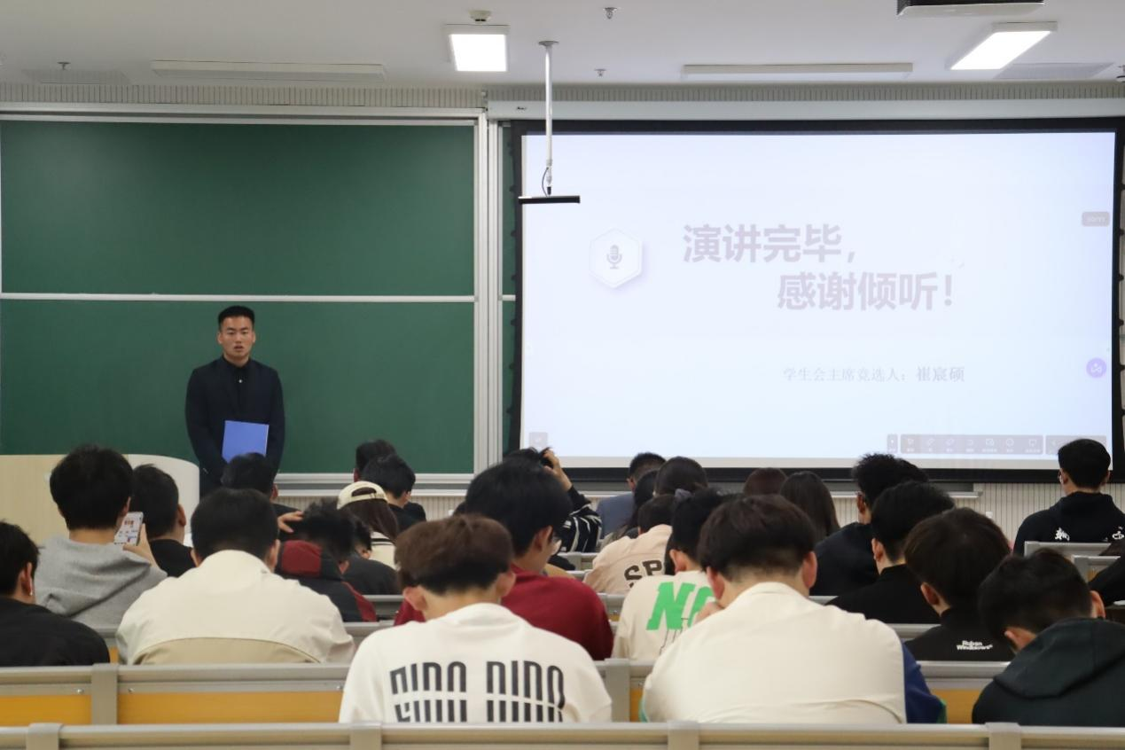 于格物楼B112教室举行第十届团委学生会主席团换届竞选。学院党委副书记范瑞红,团委副书记丁允念,辅导员武玉龙、相青、于媚媛、赵兴卯、洪亚玲以及第九届学生会主席团和各部门部长参加并担任评委。