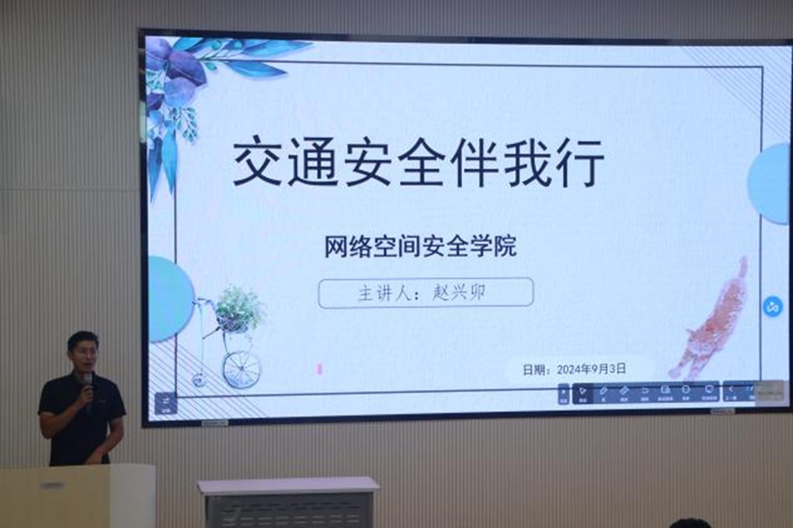 赵兴卯从交通安全、宿舍消防安全、校规校纪等多个方面展开讲解。他结合具体案例,深入浅出地分析了同学们在日常生活中可能会遇到的安全问题及其应对措施。赵兴卯指出,研究生阶段不仅是学术能力的提升阶段,也是自我管理和自我保护的重要时期,同学们在专注学术研究的同时,也要时刻保持安全意识,防范各种潜在风险。