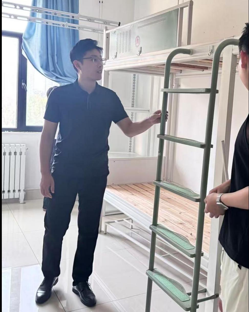 会议结束后,赵老师带领宿管部部长前往新生宿舍,进行宿舍用品和设施的检查,重点关注床铺、桌椅、空调、热水器等基础设施的完好性和安全性。确保新生能够在安全、舒适的环境中开启研究生生活。