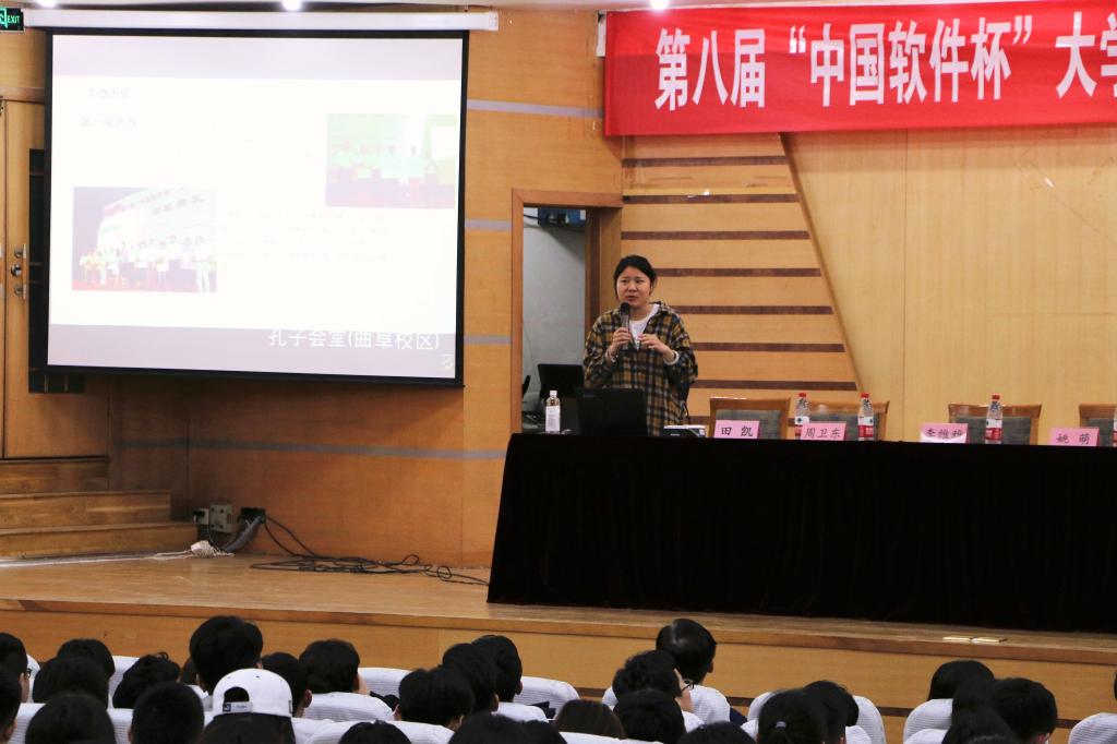 大赛组委会代表姚萌从大赛的背景及意义、大赛的历史、大赛的成果和亮点、第八届大赛的整体安排等方面进行了详细介绍。她表示,“中国软件杯”大赛以“催生多重效应,引领产业创新”为宗旨,已成为促进大学生软件人才培养设立的国家级品牌赛事。她介绍说,第八届大赛赛题的整体水平较前两届有了很大的提高,赛题更加贴近行业发展的需求,人工智能、智能制造及无人驾驶技术是近两年行业趋势发展的热点。与前几届大赛纯软件设计及算法类赛题不同,第八届大赛在赛题种类上更加丰富,有更多细分版块出现,更好地贴合当下时代发展的热点和符合企业的需求。