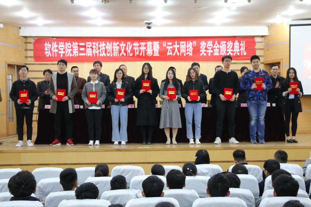 “预见未来·开启智能时代”,4月3日下午,软件学院第三届科技创新文化节开幕暨“云大网络”奖学金颁奖典礼在孔子会堂成功举办,山东云大网络有限公司、惠与软件济宁人才产业基地、学校学生工作处、实验教学与设备管理中心、教务处、校团委、软件学院等相关单位负责人出席大会,会议由软件学院党委副书记田凯主持。
